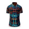 The short-sleeved shirt shows structures of computer circuit boards in bright colours.