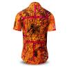 The GERMENS® short-sleeved shirt SOUVENIR is a real unique piece! A red-orange paper collage with Asian patterns was painted over with black lines by the well-known German artist Heinz W. Lotz. The shirt is made of pure cotton and is beautifully finished. The summery short-sleeved shirt is suitable for men and women and is a real highlight for any occasion.