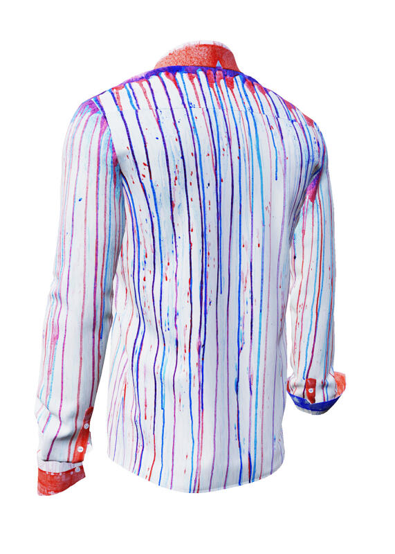 Eines Tages, in einer kleinen Künstlerwerkstatt in Dresden, beobachtete Christian Manns, wie die Farben Rot und Blau langsam einen Malerkeil herunterliefen und sich in leuchtenden Streifen vereinten. Diese einfache, doch faszinierende Bewegung inspirierte ihn zur Schaffung des Hemdes „STRIPES“. Es symbolisiert die Schönheit im Einfachen, wie sich Farben zu einem harmonischen Ganzen verbinden. Wer das STRIPES-Hemd trägt, trägt die Geschichte dieses Augenblicks, eine Geschichte von Kunst und Leben, die im Einklang stehen.