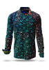 This beautiful casual shirt FLOREL is covered with colored leafy tendrils that turn from orange, red to turquoise blue to purple. Worn to a pair of white pants you immediately get a Mediterranean holiday feeling.
