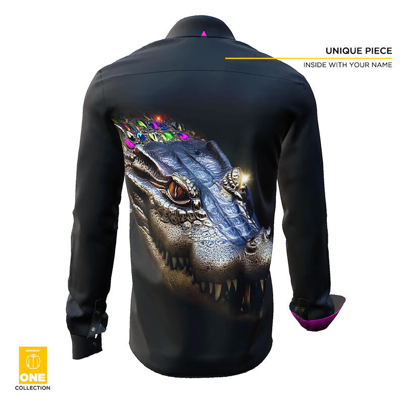 The CROCODILE shirt is a truly exceptional piece of clothing that will make you stand out in any event. With its unique crocodile print on the front and back, you'll be the center of attention. Each shirt is individually made to order and even personalized with your name on the inner collar, making it a unique one-of-a-kind piece.