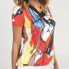 Das extravagante Damen Shirt PLUSMINUS in rot-schwarz-weiß mit etwas blau und gelb ist ein Kunstwerk zum Tragen und ein echter Eyecatcher im grauen Straßenalltag. In diesem Shirt fühlt man sich frei und unbeschwert. Das Oberflächendesign in typischer Handschrift stammt vom Künstler Gregor-T. Kozik.