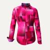 Eine ungleichmäßige Kachelung in Pink mit einem Farbverlauf zu violett prägt die Stoffoberfläche. Jede Kachel hat eine kleinteilige Musterung aus einem alten chinesischen Buch. Die Manschetten innen sind heller abgesetzt.