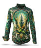 Die „MARY JANE“ Hemdbluse Damen von GERMENS vereint auf faszinierende Weise Kunst und Mode. Das extravagante Design, entworfen von René König, zeigt das Motiv der Cannabis-Pflanze, eingebettet in komplexe, ornamentale Muster und spirituell anmutende Formen. Mit dominierenden Farben in sattem Grün, Gold und erdigen Brauntönen, strahlt die Bluse eine einzigartige Mischung aus Naturverbundenheit und Eleganz aus. Diese Bluse ist perfekt für Frauen, die auffällige, elegante Blusen lieben und einen Sinn für künstlerischen Ausdruck haben.