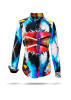 In der Damenbluse entfaltet das Design eine ruhigere, fließendere Wirkung. Die Farbflächen scheinen sich gegenseitig zu umspielen, ohne sich festzulegen. Je nach Haltung und Bewegung entstehen neue Eindrücke – kein Moment gleicht dem anderen.