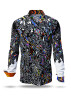 The DÉJÀ VU button-up shirt by GERMENS is a striking piece of wearable art, designed by Finnish artist Teemu Kaski. This black shirt, featuring intricate white structures and subtle touches of color, exudes sophistication and uniqueness. The minimalist yet impactful design makes it a versatile option for pairing with anything from jeans to dress pants.