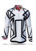 The GERMENS button-up shirt ROSARIUM, designed by Ari Fuchs, is a captivating piece with dominant colors in white and black, accented by red rose patterns on the collar and inner cuffs. The design combines bold black brushstrokes on a white background with elegant red roses, giving the shirt a romantic touch. This shirt exudes both strength and elegance and has been worn by prominent figures such as RTL presenter Kai Ebel at major events.