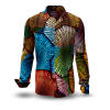 Das „CITYHALL CHEMNITZ“ Hemd für Herren von GERMENS ist ein außergewöhnliches Design von René König, das die Essenz der Stadt Chemnitz in einem auffälligen, geometrischen Muster einfängt. Die leuchtenden Farben, darunter kräftiges Blau, Grün, Gelb und Rot, verschmelzen in diesem Langarmhemd zu einem visuellen Meisterwerk. Jeder Farbblock enthält ein dreidimensional wirkendes, spiralförmiges Muster, das dem Hemd eine moderne und energetische Ausstrahlung verleiht.