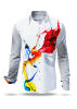 Das Hemd Herren Langarm HERZBLUT von GERMENS ist nicht nur ein Kleidungsstück – es ist ein Kunstwerk, entworfen von dem renommierten Künstler Gregor-T. Kozik. Dieses ausgefallene Hemd für Männer vereint künstlerische Freiheit und handwerkliche Perfektion in einem außergewöhnlichen Design, das Feuer und Emotionen symbolisiert. Die Farben Rot, Gelb, Blau und Schwarz dominieren das Design und erinnern an die Kraft der Leidenschaft, die jeder Träger ausstrahlt.