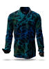 Ein sehr schönes schwarzes Hemd mit blau schwarzer Struktur. Die Vernetzung umgibt das Hemd und macht es sehr präsent.