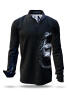 Das Zusammenspiel aus tiefschwarzem Hintergrund, typografischer Kunst und klugen Worten macht dieses Hemd zu einem besonderen Kleidungsstück mit Haltung. Es fordert auf, genauer hinzusehen – auf das Leben, auf gesellschaftliche Werte und auf den Menschen selbst.