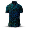 Ein schwarzes Hemd, verziert mit einer blauen Zeichnung. Blaue Flammen, geheimnisvoll und faszinierend. Dieses Bild liefert die Inspiration für das NETWORK MIRAKEL Sommerhemd für Herren.