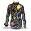 This exclusive GERMENS® blouse is a special product, made in very small quantities. Artists from all over the world design the blouse surfaces, creating an incomparable aesthetic. Here detailed information + video about this blouse design.