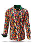 This GERMENS long sleeve shirt is a Christmas story you can wear. Across the fabric, colourful nutcrackers, angels and stars dance in bold reds, greens and golds – like a vivid scene from a nostalgic holiday movie. With the NUSSSTERNENGELKNACKER shirt you instantly become the main character at every festive occasion, from office party to family dinner.