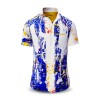 NOTIBANA is a short-sleeved shirt from GERMENS® that has a very extravagant look with its intense blue and yellow structures. The shirt is made of high-quality cotton and has a small button-down collar. The Wearable Artworks collection by GERMENS® is an exclusive edition, produced in very small numbers. Artists from all over the world design the shirt surfaces, creating an incomparable aesthetic.