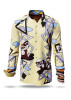 The PISTENSAU button-up shirt from GERMENS is a true statement piece, designed by artist Kerstin Heinze-Grohmann. Featuring whimsical skiers in a desert landscape, the shirt humorously hints at a world where skiing may become a distant memory due to climate change. The shirt's warm yellow and brown tones add to the playful yet thought-provoking design, making it a standout piece for those who appreciate unique fashion.