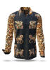 The BAROQUENT long sleeve shirt from GERMENS brings baroque elegance to modern fashion, making it a standout piece. With golden, floral patterns and vibrant animal figures on a dark background, this shirt ensures that all eyes are on you. It’s a shirt for men who crave the extraordinary.