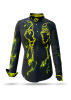 Die Hemdbluse Damen TERRA GREEN von Gregor-T. Kozik ist ein wahres Kunstwerk, das Eleganz und Extravaganz vereint. Mit ihren leuchtenden Grün- und Gelbtönen erinnert sie an Lichtimpulse aus einer fernen Galaxie und verleiht jeder Trägerin einen futuristischen Look. Diese ausgefallene elegante Bluse ist ideal für Frauen, die ihre Individualität betonen und gleichzeitig Komfort genießen möchten.